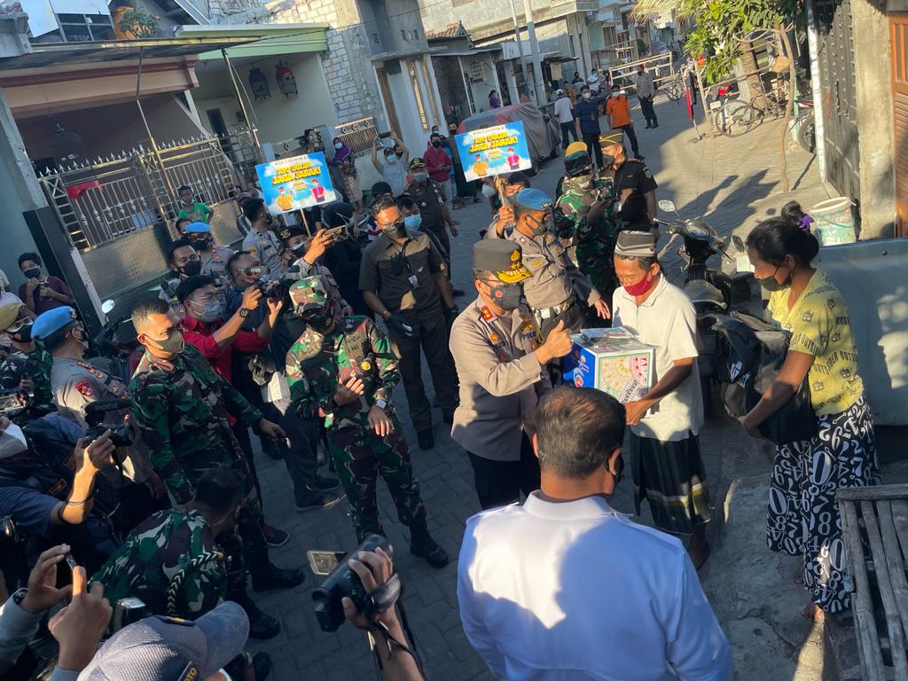 Gubernur Jawa Timur Khofifah Indar Parawansa, Pangdam V Brawijaya Mayor Jenderal TNI Suharyanto, Panglima Komando Armada II (Pangkormada II) Laksamana Muda TNI Iwan Isnurwanto, dan Kapolda Jatim Irjen Pol Nico Afinta, serta didampingi Kabinda Jatim Marsma TNI Rudy Iskandar, Sekda prov, Pejabat Utama Polda Jatim dan Pejabat Utama Kodam V/Brawijaya, membagikan 3000 paket sembako dan masker secara langsung ke Warga Bulak Banteng dan Sekitar Kenjeran, Surabaya.
