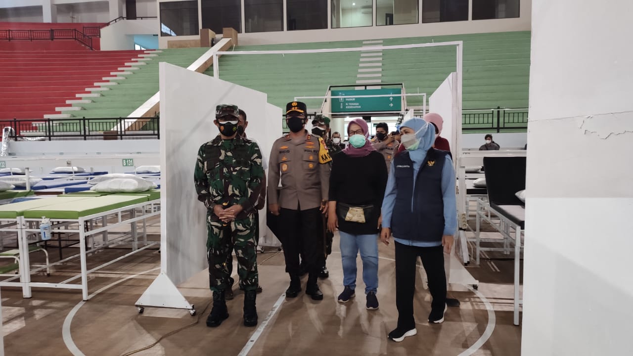 MASPOLIN || SURABAYA – Forkompimda Jatim memastikan kesiapan Rumah Sakit Darurat Indoor, yang disiapkan oleh Pemerintah Kota Surabaya, di Gelora Bung Tomo (GBT), pada Kamis sore (22/7/2021). RS Darurat Indoor ini sudah rampung persiapannya dan dalam waktu dekat siap digunakan.
