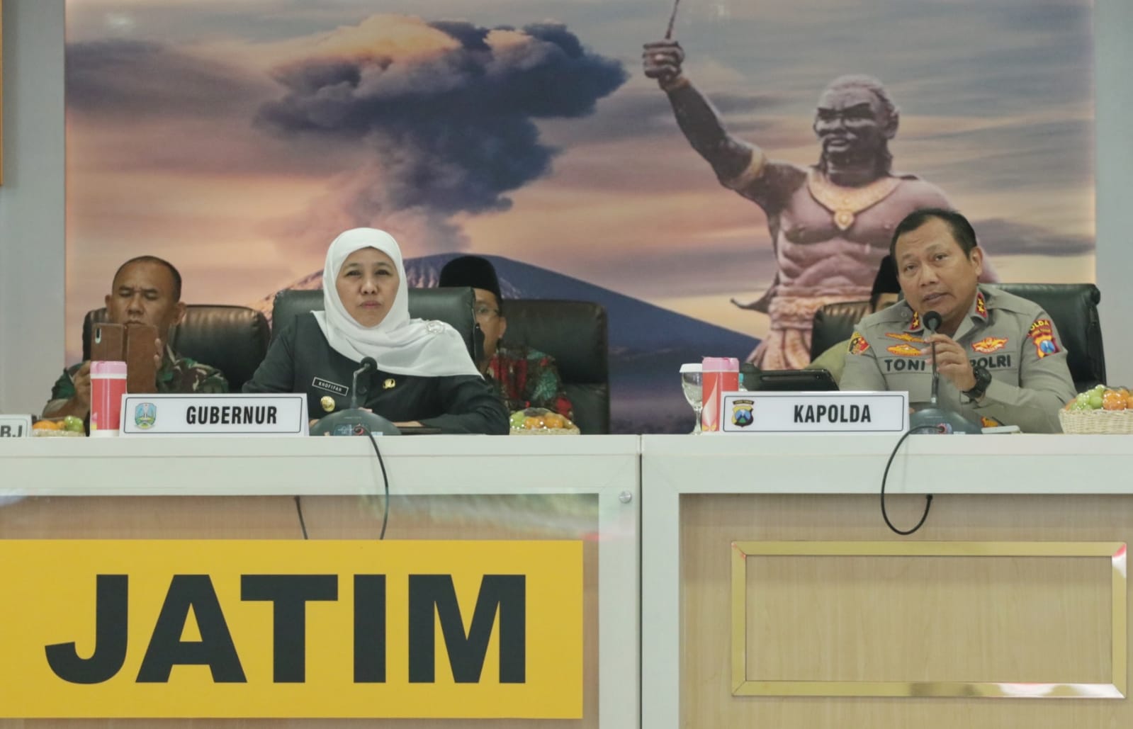 Untuk mempersiapkan Harlah NU 2023. Forkopimda (Forum Pimpinan Daerah) Jawa Timur, Gubernur Jatim Khofifah Indar Parawansa, Kapolda Jatim Irjen Pol Dr. Toni Harmanto,MH, Pangdam V Brawijaya Mayjen TNI Farid Makruf, menggelar Rakor kesiapan pengamanan kegiatan puncak peringatan 1 Abad Harlah NU, di Gedung Rupatama, Mapolda Jawa Timur, Selasa (31/1/2023).