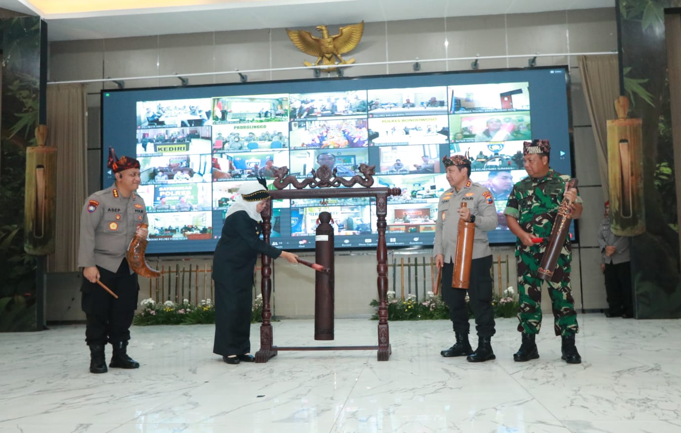 Sebelum diresmikan oleh Gubernur Jatim, Dirbinmas Polda Jatim, menampilkan beberapa video serta penanganan secara langsung terkait dengan persoalan di lingkungan masyarakat yang bisa diselesaikan dengan baik oleh tiga pilar (Babinsa, Bhabinkantibmas dan Lurah/Kades) di rumah rembug.