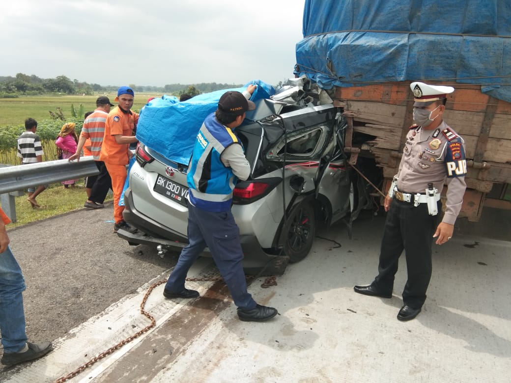 Deli Serdang, Maspolin.id— Mobil Toyota Rush warna Silver Nopol BK 1300 VC yang dikemudikan oleh Muhammad Nawawi (23) warga Padang Genting Talawi Batu Bara menabrak bagian belakang Truck Mitsubishi Fuso Tronton warna Orange BK 8522 DC yg dikemudikan oleh Suroyo (44) warga Gunung Maligas Simalungun, sekira pukul 11.50 wib, (Senin, 3/2/2020)