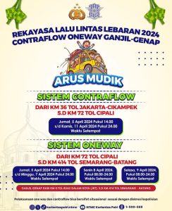 JAKARTA – Maspolin.id|| Korlantas Polri akan menerapkan rekayasa lalu lintas ganjil-genap di sejumlah ruas jalan tol selama angkutan mudik Lebaran 2024. Nantinya, pelanggar ganjil-genap akan ditilang elektronik melalui kamera ETLE.