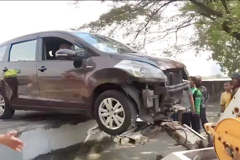 JAKARTA – Maspolin.id|| Sebuah mobil minibus Suzuki Ertiga B 2103 BL tersangkut di bantaran Kali Mookervart yang menghubungkan Kali Angke dengan Cisadane, Cengkareng, Jakarta Barat, Selasa sore lantaran pengemudi menyetir sambil melihat aplikasi peta digital.