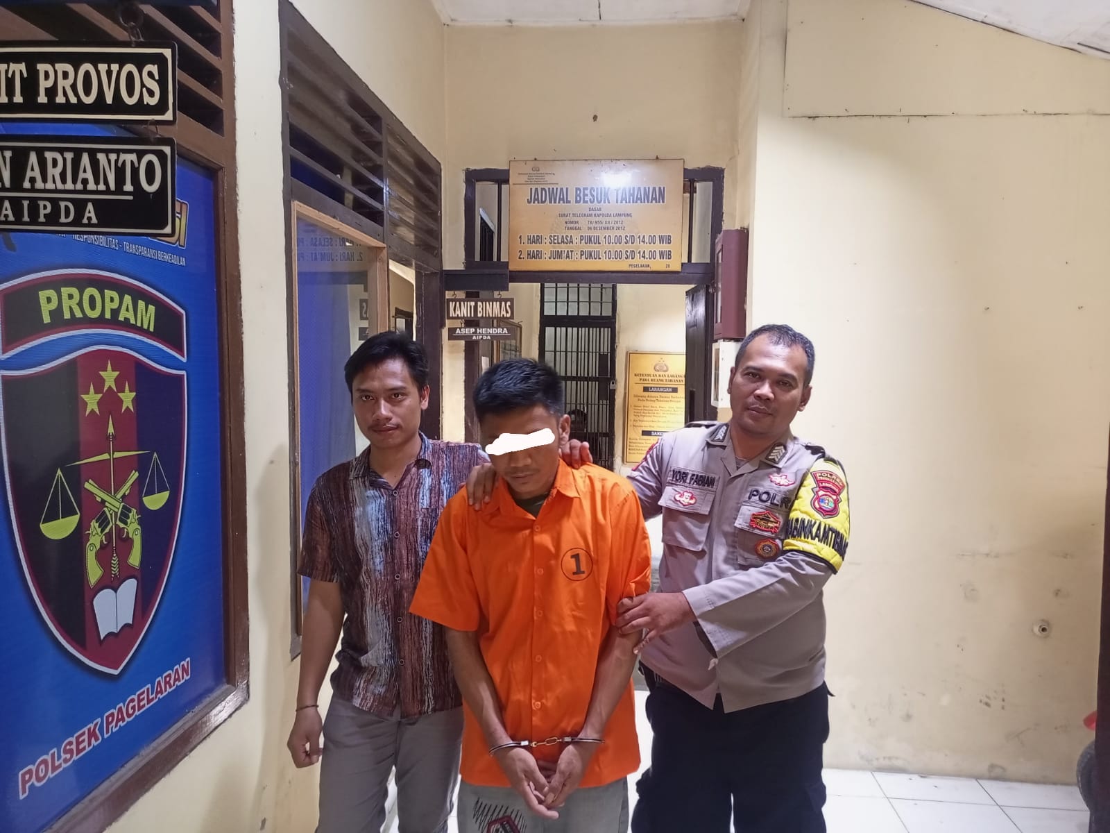 Kapolsek Pagelaran, Iptu Hasbulloh menjelaskan, pelaku diamankan Unit Reskrim Polsek Pagelaran pada Jumat siang sekira pukul 14.00 Wib. Pelaku yang dalam kesehariannya berprofesi sopir Travel ini ringkus saat bersembunyi di rumah rekannya yang berada di daerah Kecamatan Ulubelu Kabupaten Tanggamus.