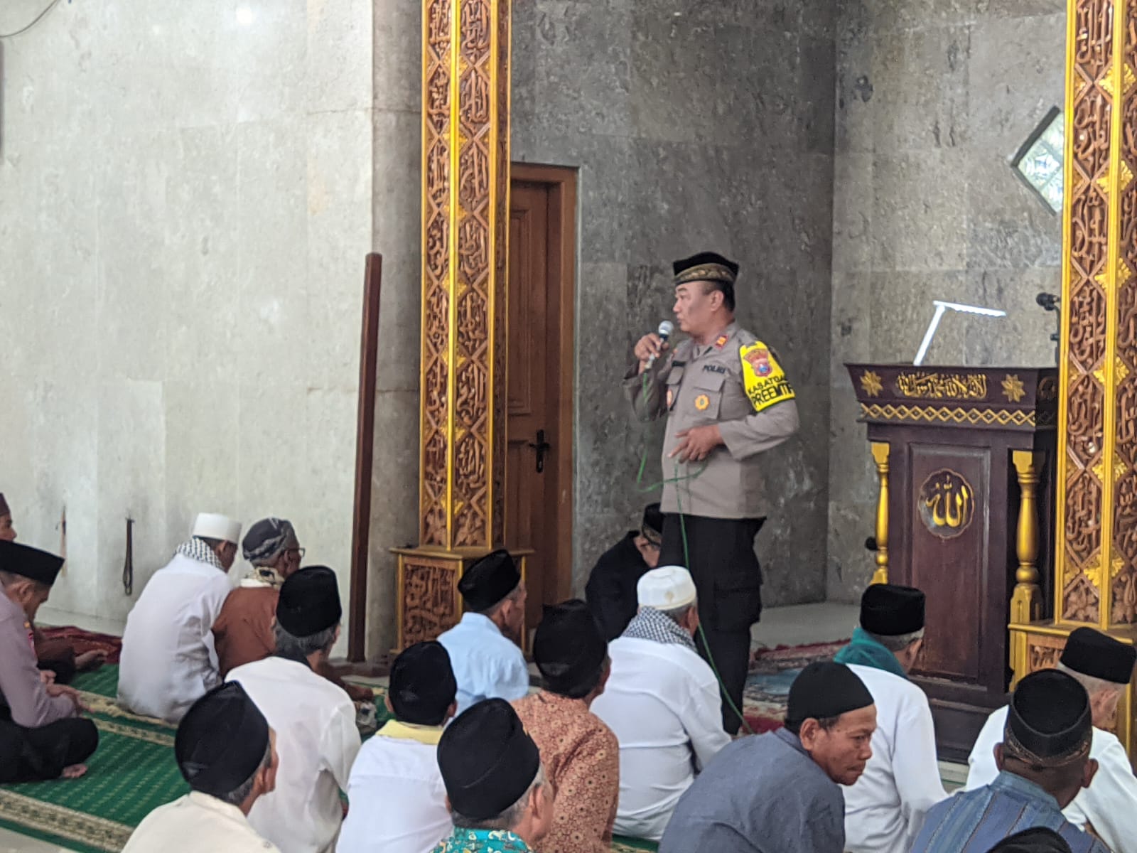 Memberikan himbauan setelah sholat jumat, IPTU Hermanto mengatakan, “kami himbau kepada bapak bapak sekalian, situasi kamtibmas meningkat, untuk itu, kami butuh partisipasi dan bantuan bapak bapak untuk selalu membimbing dan mengawasi putri putri nya”