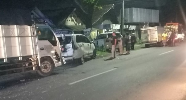 Masih kata Umam, akibat tabrakan itu, mobil terdorong ke depan menghantam mobil Toyota Avanza nopol S 1399 NL yang dikendarai Hadi Sukarto, 46, warga Desa Jrambe, Dlanggu, Mojokerto. Tidak berhenti di situ, hantaman dari belakang membuat mobil tersebut terdorong dan menabrak pikap box bernopol W 9070 PE yang disopiri Anwar Cholik, 45, asal Gondang, Nganjuk.
