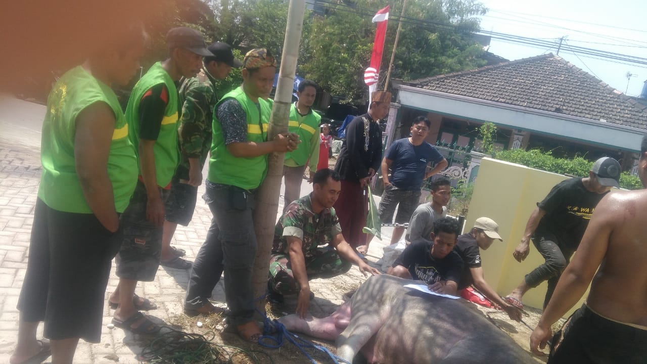 ” Tahun ini jumlah hewan kurban yang di potong di desa sejumlah 132 dengan rincian 19 ekor kerbau, 2 ekor sapi dan 111 kambing yang jelas untuk tahun ini ada peningkatan sekitar 15 % dari tahun kemarin” ucap Sertu Nur Rochim.
