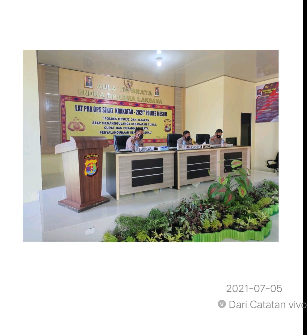 Mesuji, Maspolin.id—Polres Mesuji lakukan kegiatan Lat Pra Ops sikat Krakatau 2021 di gedung Aula Tri Brata Endra Dharma Laksana Polres Mesuji pada Hari Senin 5 Juli 2021 sekitar pukul 10:00 Wib.
