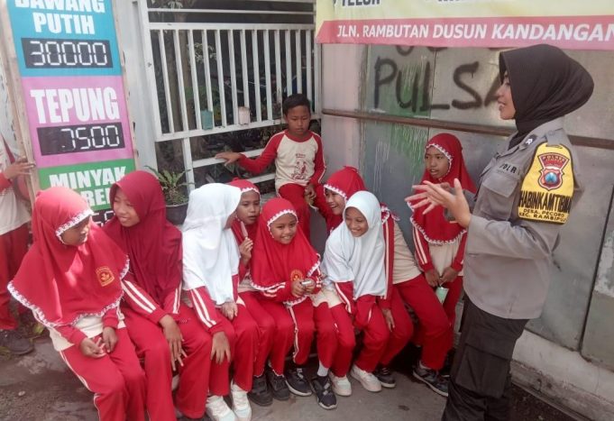 Polisi Wanita dari Polsek Rambipuji, Polres Jember ini aktif menyampaikan materi pendidikan masyarakat dan bimbingan kepada siswa.