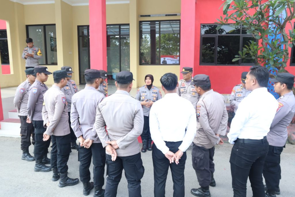 Satu persatu, IPTU Sucipto mengecek kesiapan kelengkapan identitas para bhabinkamtibmas. (Senin, 24/7/2023)