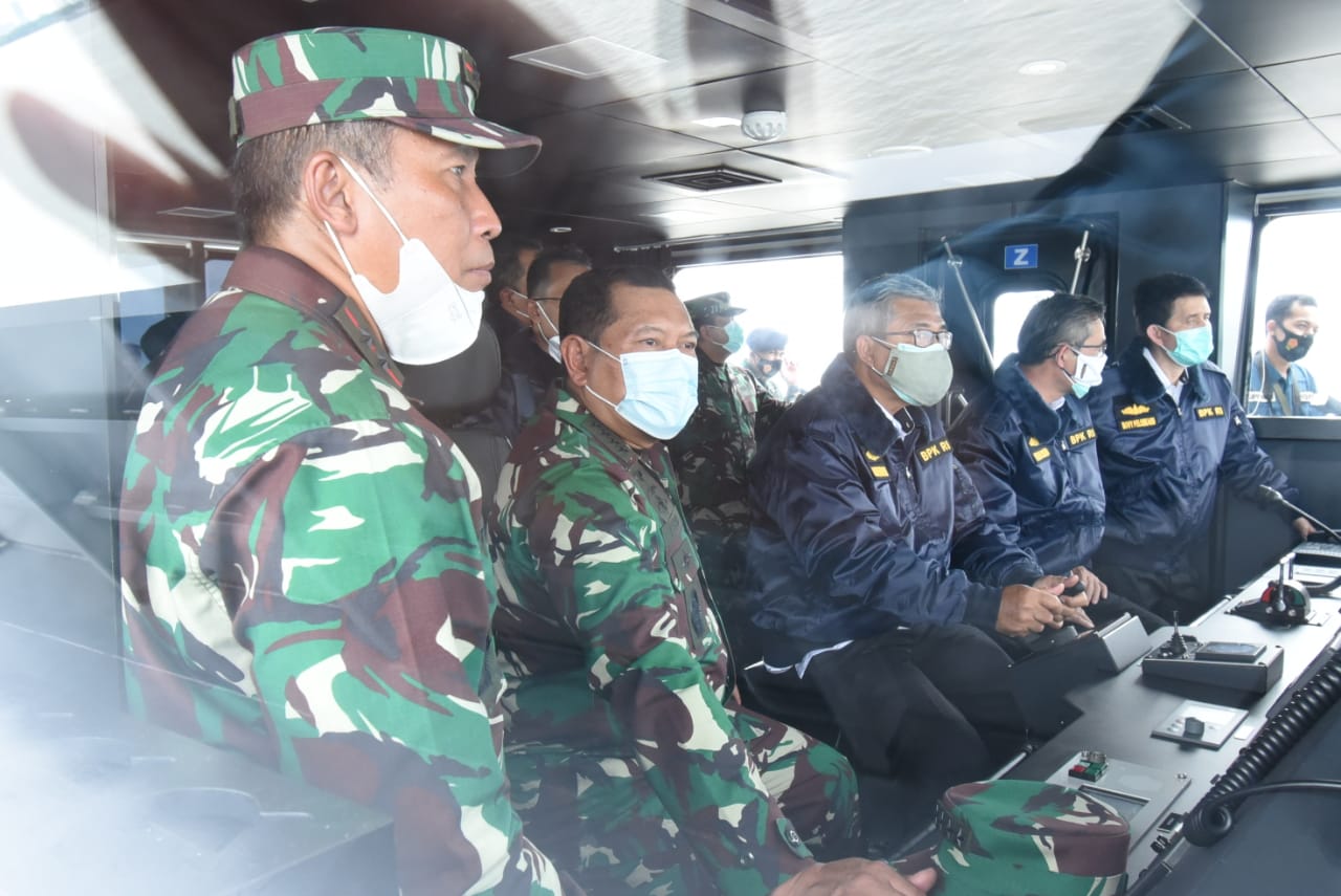 MASPOLIN || Surabaya – Gubernur Akademi Angkatan Laut (AAL) Laksamana Muda TNI Tunggul Suropati, S.E., M.Tr (Han) mendampingi Kepala Staf TNI Angkatan Laut (Kasal) Laksamana TNI Yudo Margono, S.E., M.M. dan Tim Badan Pemeriksa Keuangan RI meninjau kapal latih Taruna AAL, Kapal Angkatan Laut (KAL) Kadet-7 kemarin.