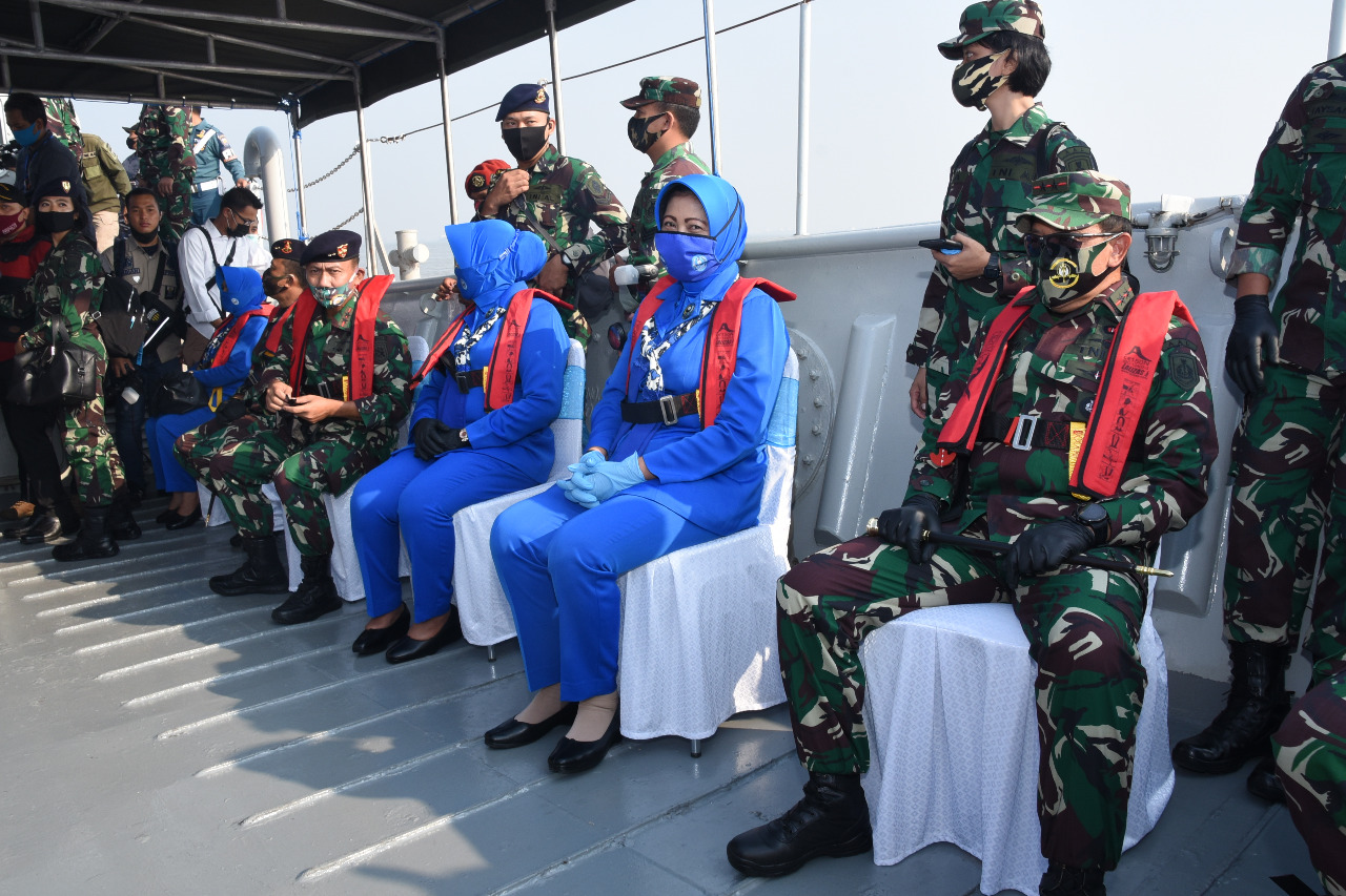 Tampak hadir para Pangkotama TNI AL wilayah Surabaya, Gubernur Jawa Timur Khofifah Indaraprawansa dan pejabat Forkopimda Jawa Timur lainnya.