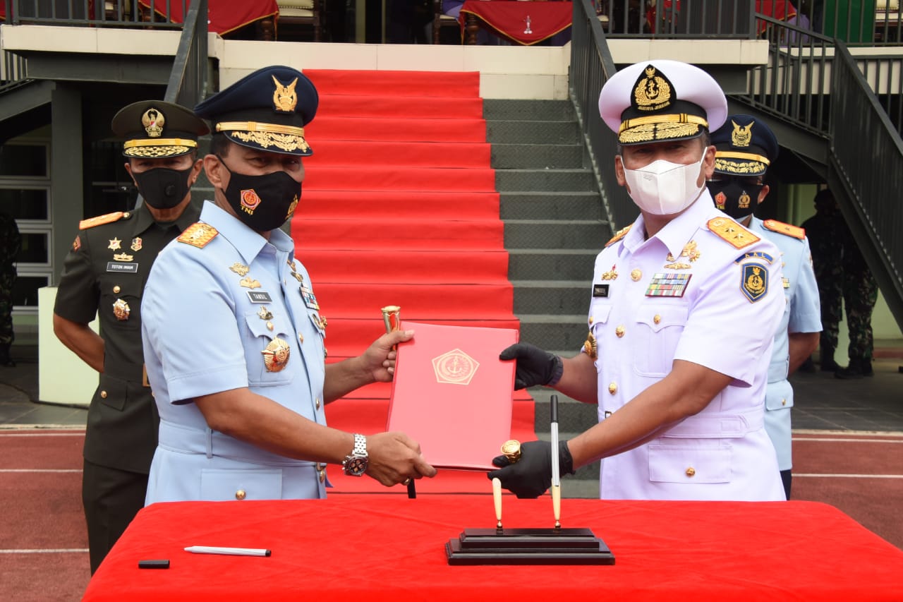 MASPOLIN || AAL – Gubernur Akademi Angkatan Laut (AAL) Laksamana Muda TNI Tunggul Suropati, S.E., M.Tr (Han) didampingi Ibu Asuh Taruna AAL, Ny. Nita Tunggul Suropati menghadiri Upacara Kenaikan Pangkat Prajurit Taruna ke Kopral Taruna sekaligus menerima 130 Taruna AAL Tingkat l TA.2020/2021 dari Komandan Jenderal Akademi TNI Marsekal Madya TNI Tamsil Malik, S.E. di Lapangan Pancasila, Akademi Militer, Magelang, Jumat (29/1).