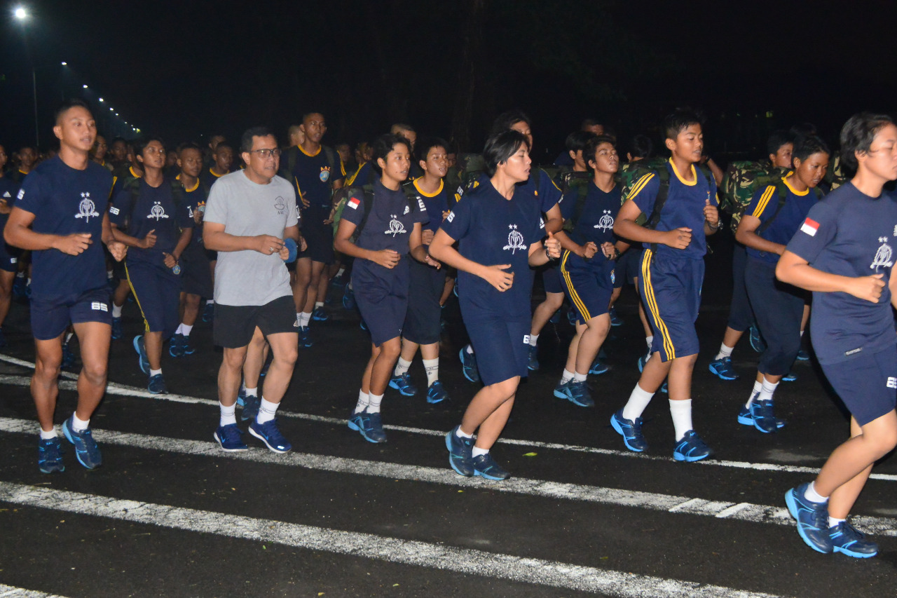 Bumimoro,Maspolin.id – Pukul 4.30 pagi, usai pelaksanaan sholat Subuh berjamaah, Taruna dan Taruni Akademi Angkatan Laut (AAL) tampak lebih bersemangat melaksanakan olahraga pagi, pasalnya Gubernur AAL Laksamana Muda TNI Edi Sucipto, S.E., M.M. didampingi Ibu Asuh Taruna AAL Ny. Eni Edi Sucipto turut dalam aktifitas Taruna di Lapangan Resimen Kesatrian AAL, Morokrembangan, Selasa (18/2).