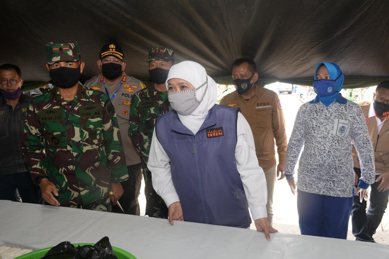 Dalam kesempatan tersebut Gubernur Jatim meninjau langsung Dapur Lapangan mulai tempat memasak, tempat untuk menyiapkan bahan-bahan makanan, tempat penyimpanan bahan makanan serta tempat pengepakan/pembungkusan makanan.