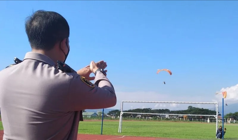 “Memakai paralayang untuk menyampaikan kamtibmas ini bukan akhir layanan karena ke depan kami melaksanakan rutin kegiatan yang ditingkatkan dalam rangka keselamatan berlalu lintas dan antisipasi kenaikan COVID-19“