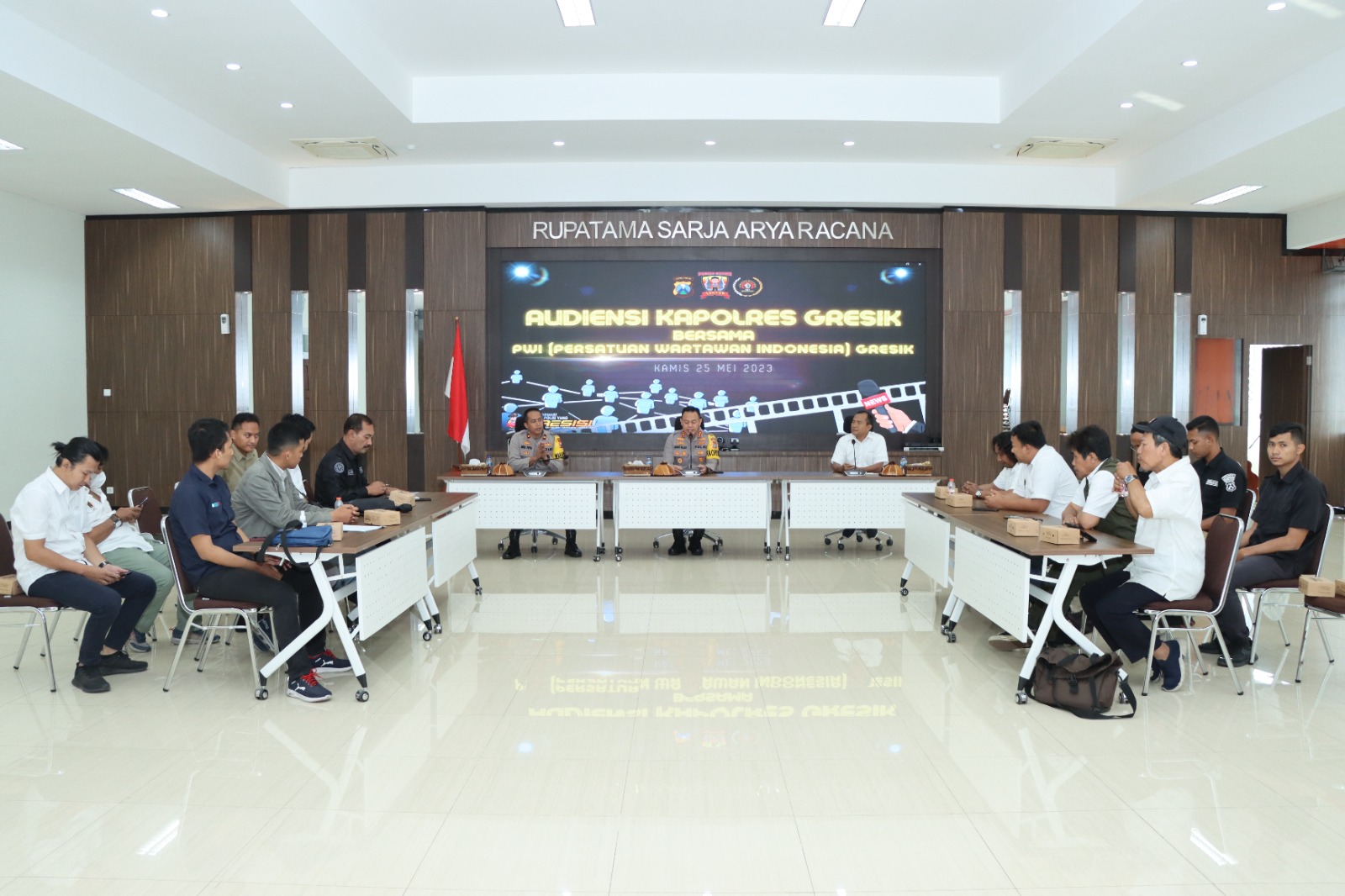 Ajakan itu disampaikan oleh Kapolres Gresik, AKBP Adhitya Panji Anom saat menerima silaturahmi dan audensi pengurus Persatuan Wartawan Indonesia ( PWI ) di Polres Gresik, Kamis (25/5).