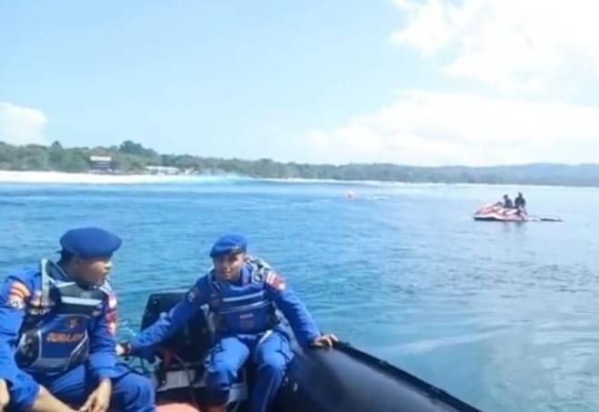 Jajaran Satpolair Polresta Banyuwangi Aiptu Erman Wahyudi, S.H. bersama Komandan Kapal Bripka I Nyoman Suma dan Bharka Jimy BKO DIT Polda Jatim juga melaksanakan patroli dan pengamanan peserta WSL dengan menggunakan 1 unit perahu karet.