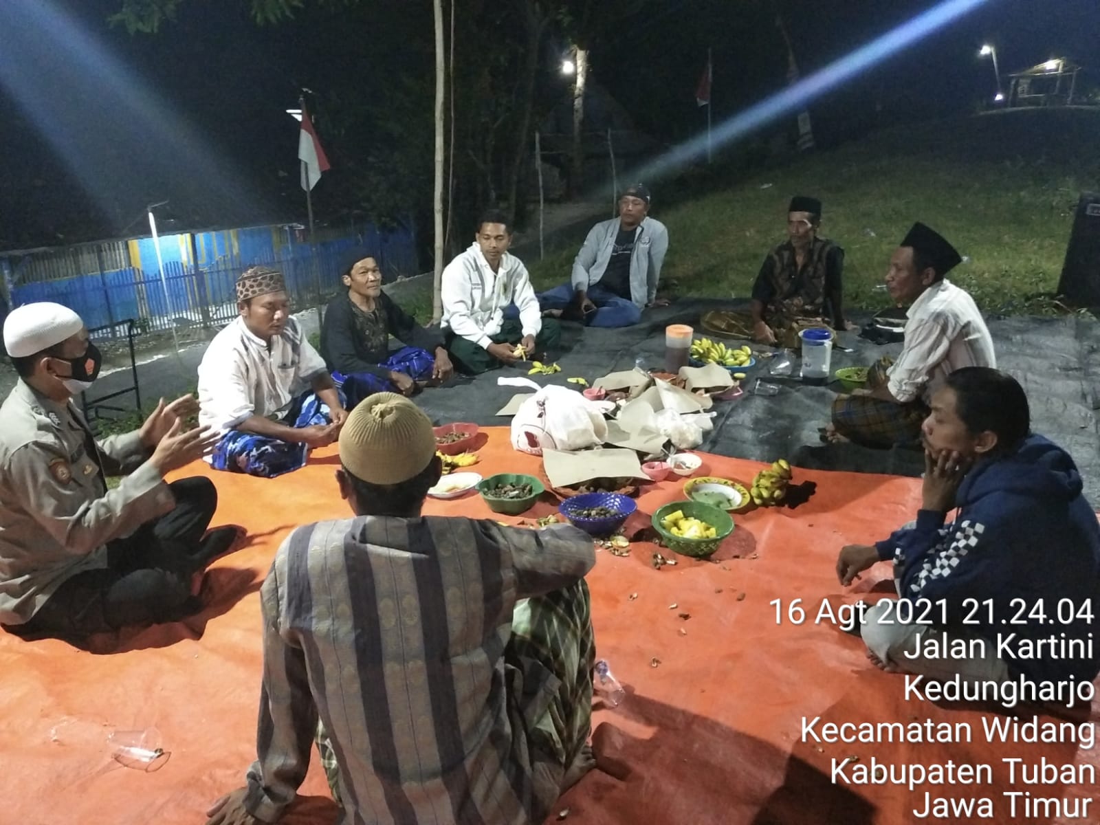 Widang,maspolin.id- Bhabinkamtimas Polsek Widang Desa Kedungharjo Bripka Mujianto menghadiri malam tirakatan dan mensosialisasikan imbauan agar tidak menggelar hiburan maupun lomba HUT ke-76 RI yang menimbulkan kerumunan, Selasa dini hari , (17/08/2021).