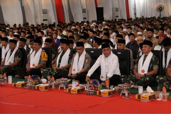 MEDAN,Maspolin.id – Gubernur Sumatera Utara (Sumut) Edy Rahmayadi menghadiri kegiatan Safari Ramadan Panglima TNI Hadi Tjahjanto dan Kapolri Tito Karnavian, Selasa (14/5) di Hanggar Apron Charlie Lanud Soewondo, Medan. Gubernur berharap kedamaian Pemilu 2019 di Sumut dapat terus terjaga.