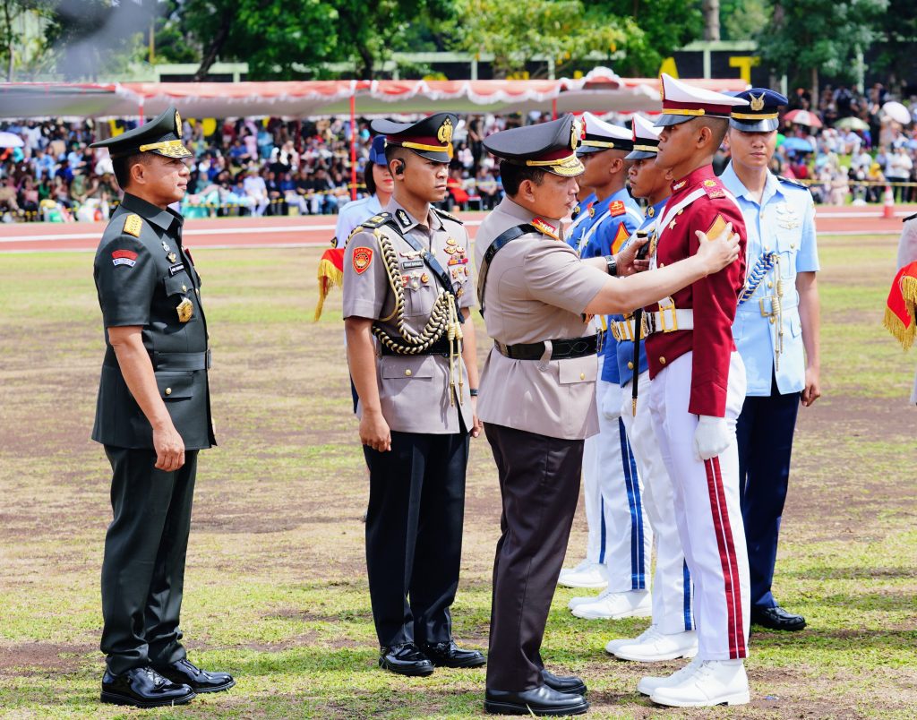 “Terakhir, saya berpesan agar para taruna terus mempererat sinergisitas dan soliditas TNI-Polri dalam setiap kesempatan. Dengan sinergitas dan soliditas TNI-Polri yang kokoh maka kita akan mampu melewati berbagai tantangan bangsa demi mewujudkan visi Indonesia Emas 2045,” papar Sigit.