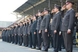 Dalam upacara tersebut hadir, Kapolresta Mojokerto AKBP Wiwit Adisatria, S.H., S.I.K., M.T., diikuti Pejabat Utama Polresta Mojokerto, dan seluruh Anggota serta ASN Polresta Mojokerto.
