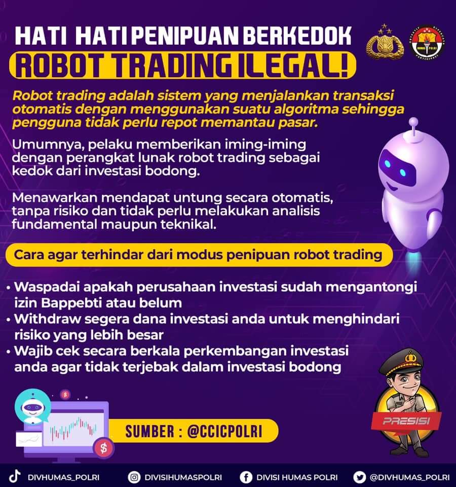 Umumnya, pelaku memberikan iming-iming dengan perangkat lunak robot trading sebagai kedok dari investasi bodong. Menawarkan mendapat untung secara otomatis, tanpa risiko dan tidak perlu melakukan analisis fundamental maupun teknikal.