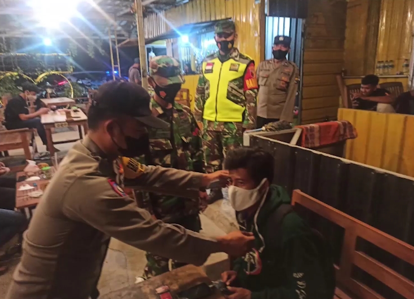 “Dalam Operasi Yustisi Kali Ini Petugas Membagikan Masker Dan Menghimbau Agar Selalu Menerapkan Prokes, Total 150 Masker dibagikan”. Tambah Kapolsek