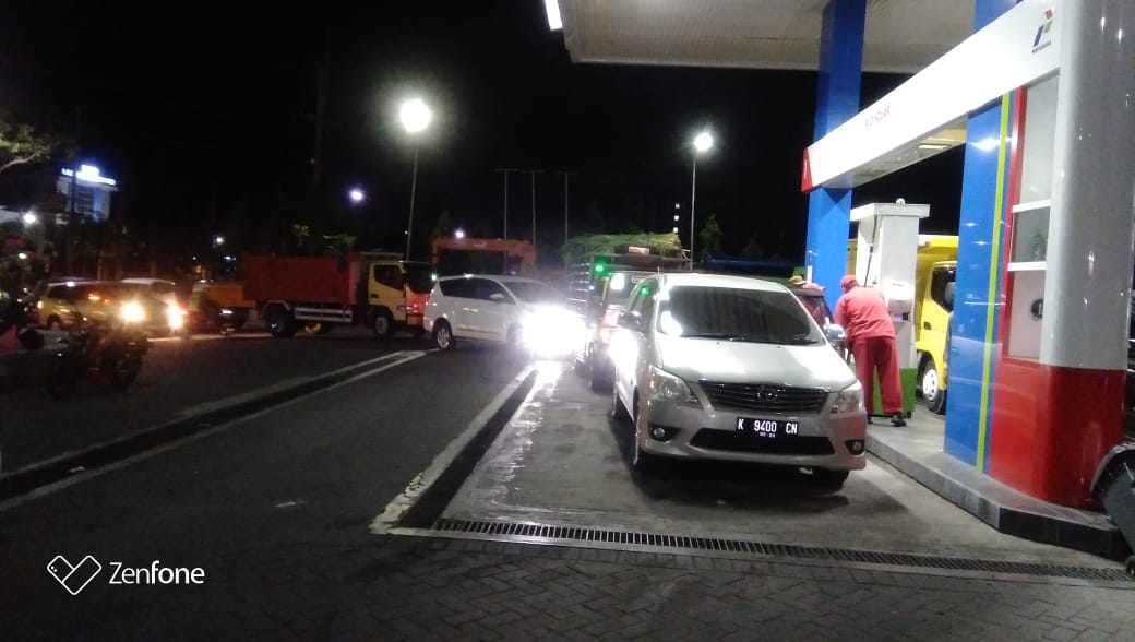 Hingga berita ini di tulis Antrian panjang masih berlangsung di SPBU Jl. veteran.
