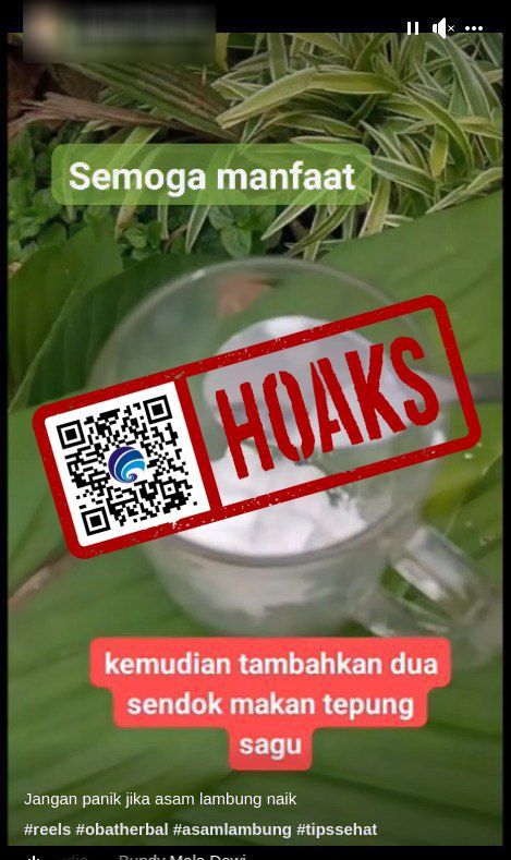 JAKARTA – Maspolin.id|| Viral di Facebook sebuah unggahan yang berisikan konten video Reels dengan narasi “jangan panik jika asam lambung naik”. Dalam video tersebut narator menjelaskan caranya yaitu “Pertama-tama siapkan satu buah gelas, kemudian tambahkan dua sendok makan tepung sagu.