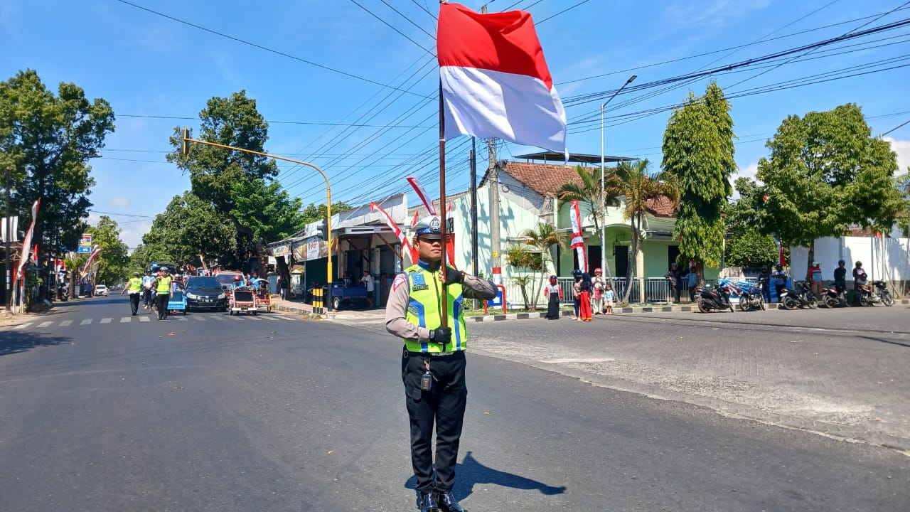 Di Kabupaten Bondowoso Peringatan detik-detik Proklamasi tak hanya di gelar di lapangan, namun juga di seluruh persimpangan dan jalan protokol yang padat lalulintasnya.
