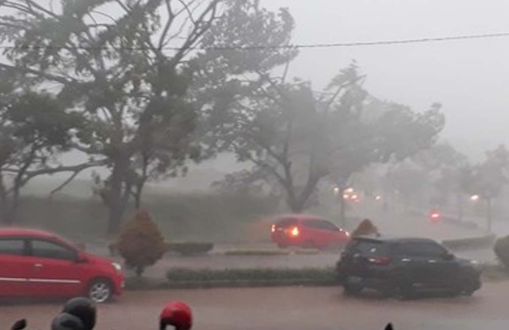 Hujan disertai angin kencang terjadi sekitar pukul 16.30 hingga pukul 18.00 sehingga banyak ranting dari pohon pelindung di tengah Jalan Raya Boulevard patah dan berserakan di badan jalan yang membahayakan pemakai kendaraan.