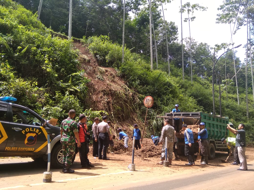 Mendapat laporan adanya tanah longsor, pihak Polsek Banyumas, Polsek Kemranjen, dan Koramil Banyumas serta Koramil Kemranjen mendatangi lokasi, kemudian melakukan pengamanan dan pengaturan arus lalu lintas dengan sistem buka tutup. Selain itu, longsoran pertama juga langsung dibersihkan oleh personel tersebut.