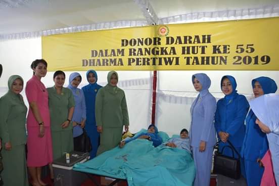 Surakarta,Maspolin.id – Dalam rangka memperingati HUT ke 73 Persit Kartika Chandra Kirana sekaligus HUT ke 55 Dharma Pertiwi, Persit Kartika Chandra Kirana PD IV Diponegoro menggelar kegiatan bakti sosial berupa donor darah dan Anjangsana di Rumkit TK III Slamet Riyadi Surakarta, Senin (18/3/2018).