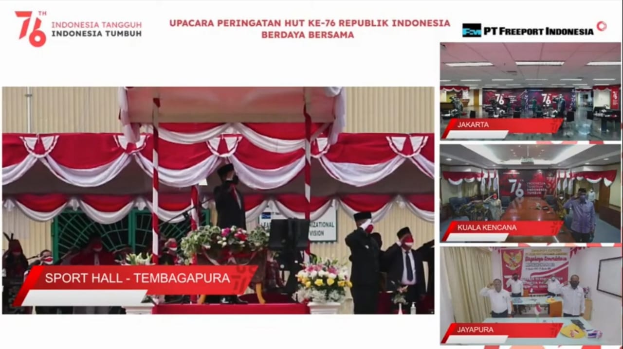 Secara virtual upacara ini diikuti oleh perwakilan karyawan PT.FI dari Ofiice Building #1 Kuala Kencana, Kantor Perwakilan PT.FI di Jayapura dan dari Perwakilan karyawan PT.FI yang berkantor di Plaza 89 Jakarta.
