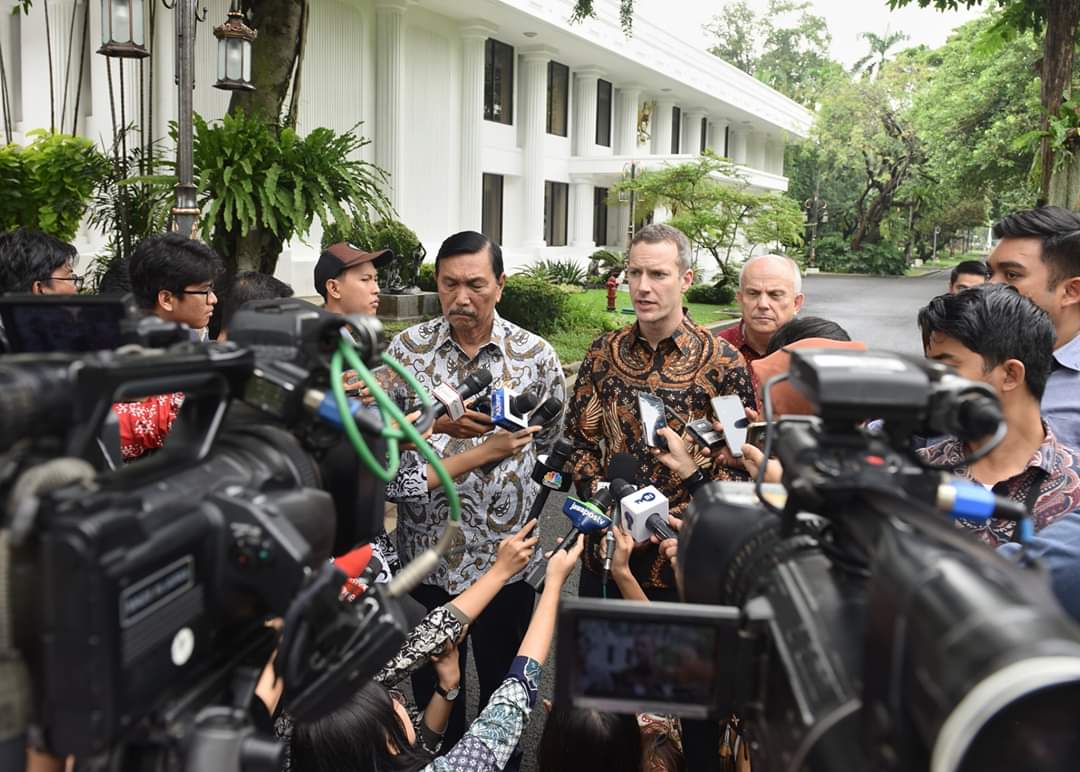 Jakarta,Maspolin.id – CEO IDFC Adam S. Boehler didampingi Menko Kemaritiman dan Investasi Luhut B. Pandjaitan menjawab wartawan usai diterima oleh Presiden Jokowi, di Istana Merdeka, Jakarta, Jumat (10/1) pagi.