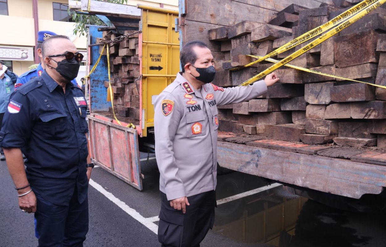 Dari penggerebekan ini petugas mengamankan 18 orang di lokasi pembalakan liar serta mengamankan 500 kubik kayu balok hasil pembalakan liar serta peralatan mesin pemotong kayu, satu bilah parang, dan dua unit truk PS.