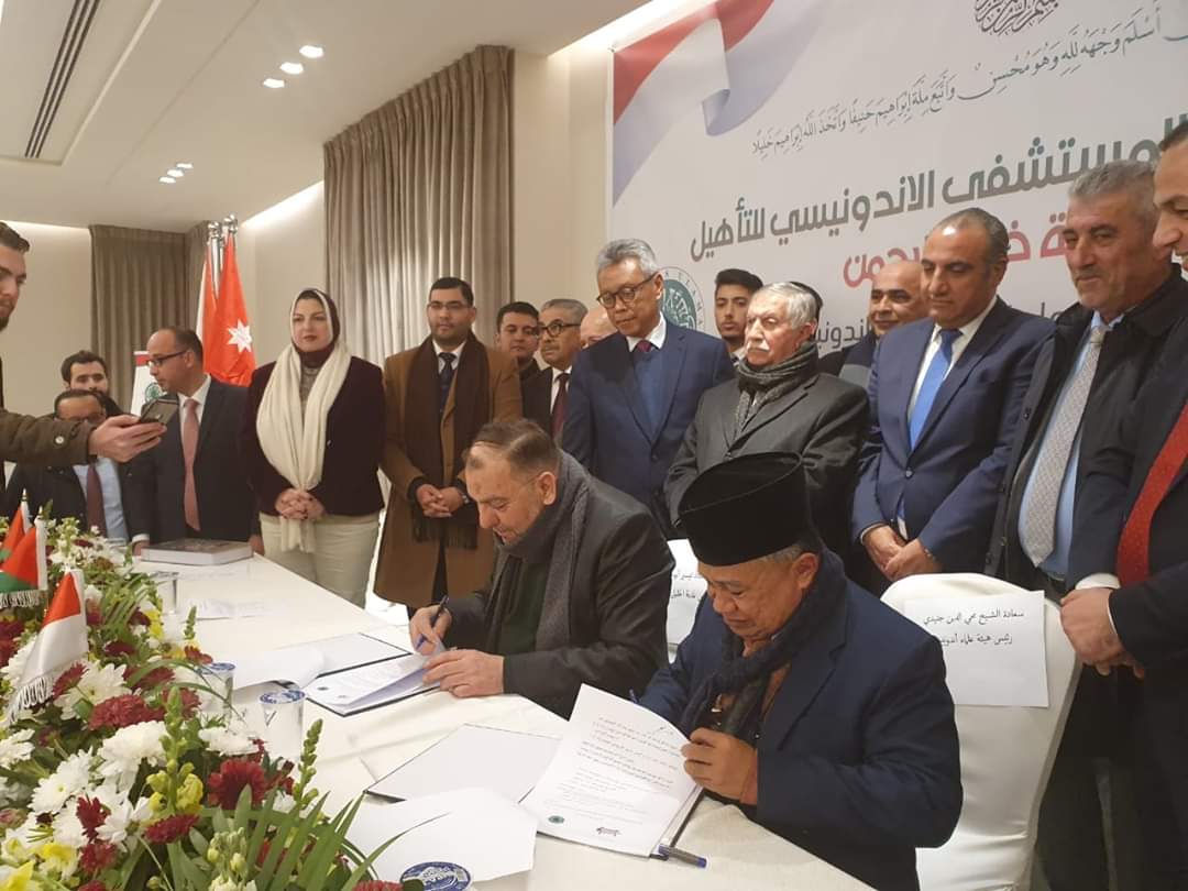 Maspolin.id – Amman, Yordania, telah di tandatangani MOU antara Majelis Ulama Indonesia (MUI) yang di wakili oleh Ketua Bidang Hubungan Luar Negeri dan Kerjasama Internasional, Muhyiddin Djunaidi, dengan Walikota Kota Hebron, Tayser Abu Sneineh.