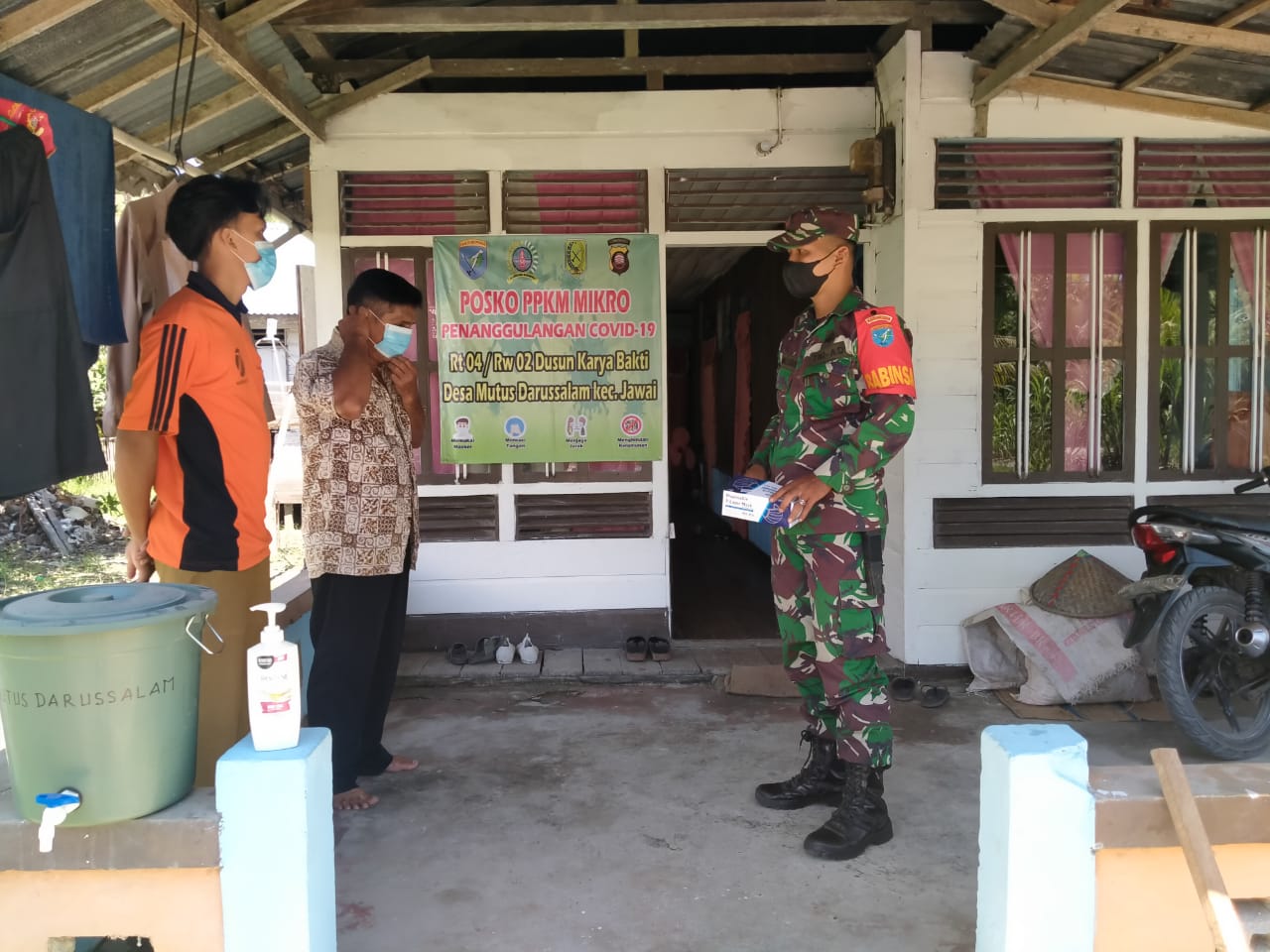 Sambas,maspolin.id- Dalam rangka pencegahan penyebaran Covid 19 Babinsa Mutus Darussalam Kopda Jamaludin melakukan pengecekan terhadap posko Pemberlakuan Pembatasan Kegiatan Masyarakat (PPKM) di RT 04 RW 02 Dusun Karya Bakti Desa Mutus Darussalam Kec. Jawai, Minggu ( 30/5/21 )