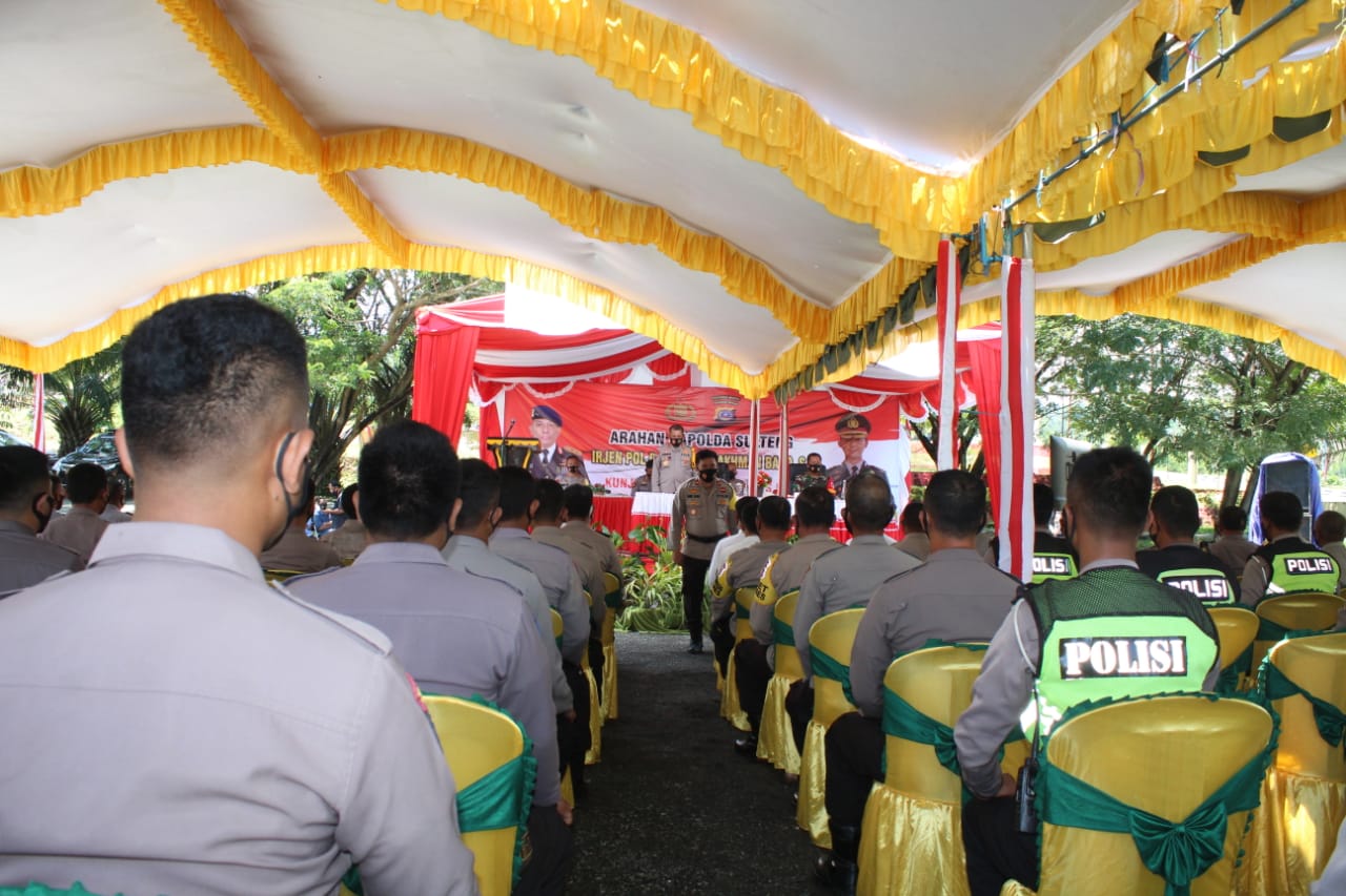 Selanjutnya, Kapolda Sulteng menyampaikan arahan kepada personel agar anggota tetap menjaga kesehatan serta menjalin sinergitas dengan semua komponen, tentunya dalam upaya penanganan Covid-19 di daerah Provinsi Sulawesi Tengah karena nikmat menjadi anggota polri adalah nikmat yang mulia dan harus disyukuri sebab semuanya merupakan pemberian Allah SWT, dalam menciptakan kamtibmas yang aman dan kondusif dibutuhkan kerja keras anggota Polri sehingga wilayahnya dapat tetap aman dan pembangunan dapat berjalan di aspek segala bidang dengan melakukan sambang kunjung, menyelesaikan masalah (problem solvingoving), melaksanakan patroli dan memberikan penyuluhan.