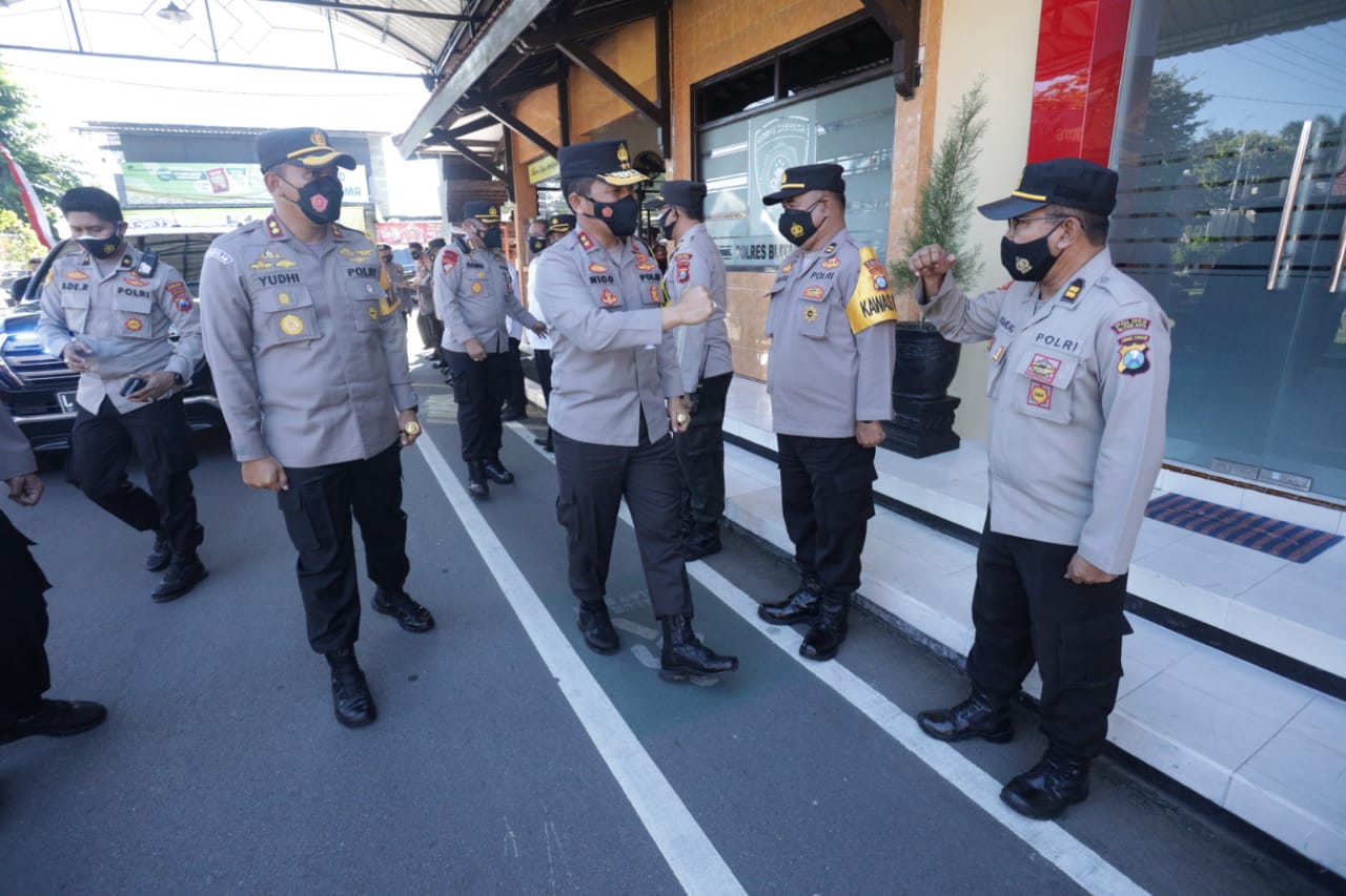 MASPOLIN || BLITAR KOTA,- Kapolda Jawa Timur Irjen Pol Dr. Nico Afinta, didampingi Pejabat Utama (PJU) Polda Jatim, Selasa (20/4/2021) sore, memberikan pengarahan Kepada Kapolres Blitar Kota beserta seluruh jajaran terkait pengecekan pelaksanaan program Presisi bapak Kapolri. Serta pelaksanaan Pencegahan Penularan Covid-19 dan Larangan Mudik Lebaran Tahun 2021.