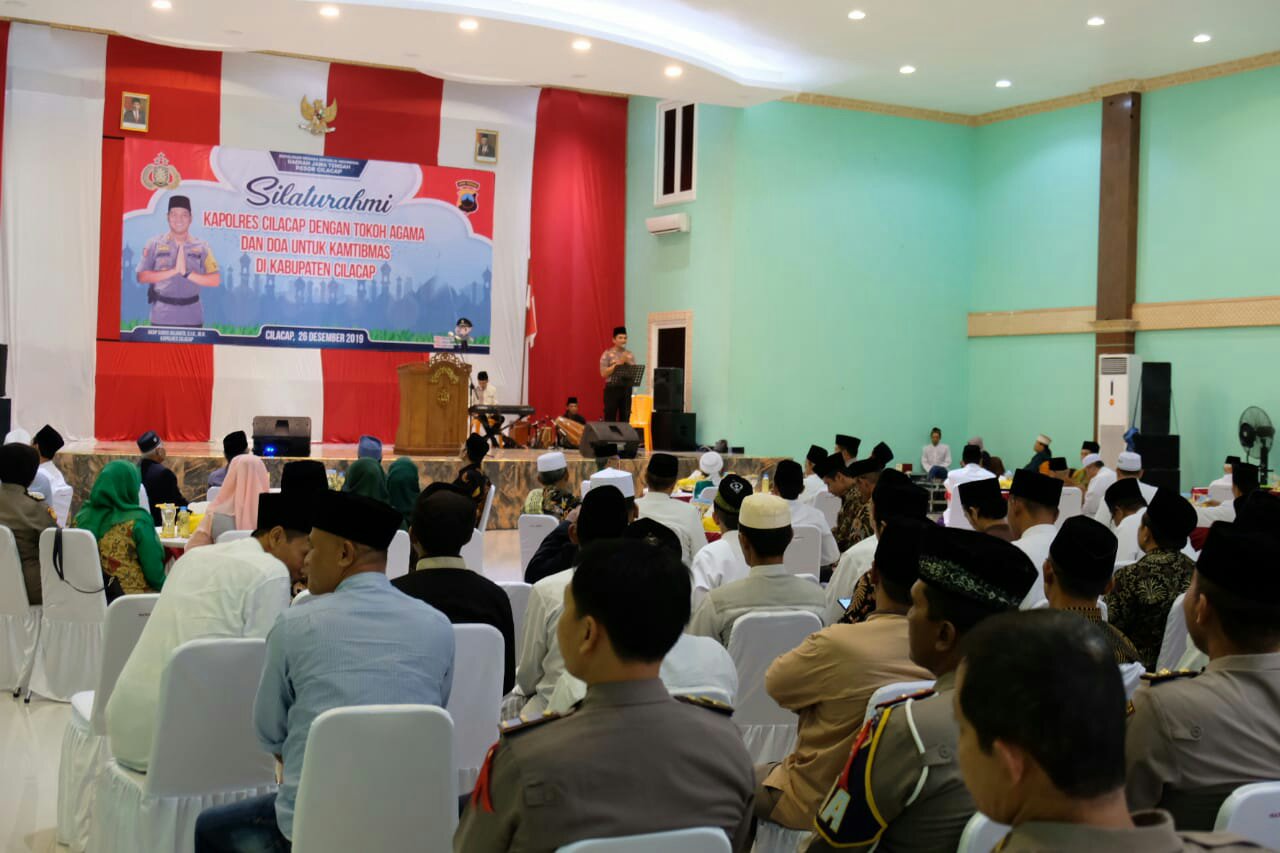 Silaturahmi digelar di Sentul Hall Cilacap, dan dihadiri Ketua FKUB Kabupaten Cilacap, para tokoh agama serta pejabat utama Polres Cilacap.Kapolres Cilacap AKBP Djoko Julianto SIK MH mengucapkan terimakasih atas kerja sama para tokoh agama serta tokoh masyarakat yang sudah membantu untuk menjaga keamanan dan ketertiban di masyarakat.