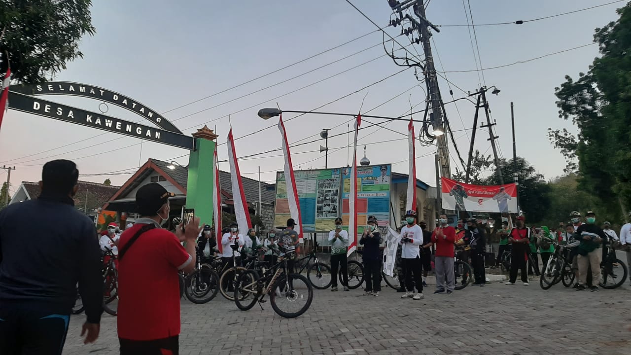 Gowes sepeda bersama komunitas sepeda menyusuri Jalan Lingkar stat desa kawengan menuju finish kantor kecamatn malo.