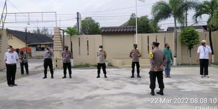 Apel pagi dan memberikan App kepada seluruh Kasi, kanit dan seluruh anggota Polsek Palang di Halaman mako Polsek Palang Polres Tuban.