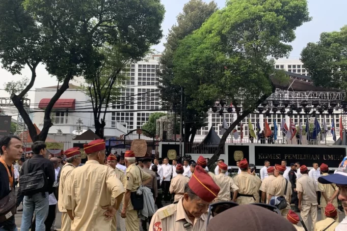JAKARTA (ANTARA) – Maspolin.id|| Ratusan pendukung bakal pasangan capres dan cawapres Prabowo Subianto-Gibran Rakabuming mulai memadati kawasan Jalan Imam Bonjol, Jakarta Pusat, hingga di depan Kantor KPU RI, Rabu.