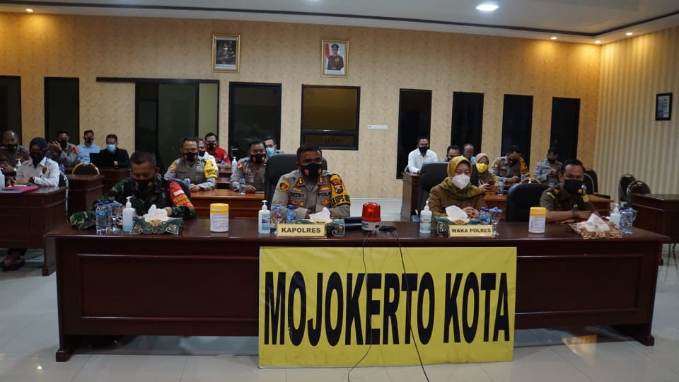 Seusai melaksanakan kegiatan Study Komparasi Forkopimda Kota Mojokerto, Kapolresta Mojokerto AKBP Deddy Supriadi, S.I.K., M.I.K bersama satgas penanganan covid Kota Mojokerto mengikuti Vidcon yang dipimpin Kapolda Jatim didampingi Kasdam V/Brawijaya dan Sekda Prov Jatim dalam rangka anev Penanganan Covid-19 di Ruang Vidcon Wira Tama Polres Mojokerto Kota. Senin (28/12/20) Sore.