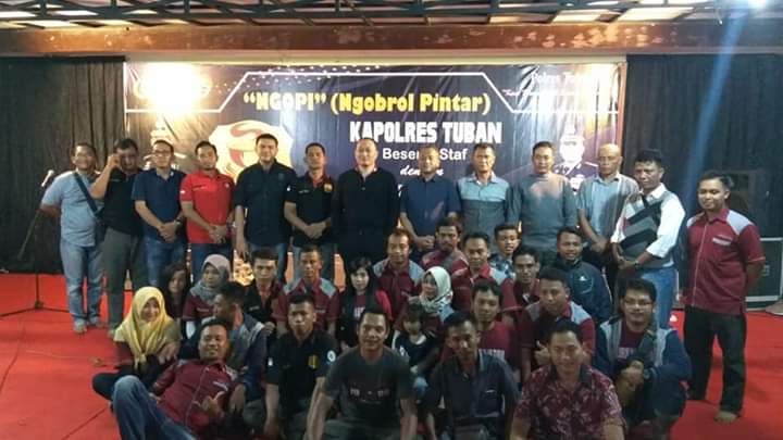 Tuban,Maspolin.id – Kapolres Tuban AKBP Nanang Haryono, S.H. S.I.K., M.Si bersama Waka Polres Tuban KOMPOL Teguh Priyono, S.I.K., Pejabat Utama Polres Tuban dan Kasi Humas jajaran pada Jum’at (05/04/2019) malam, bertempat di taman Satreskrim Polres Tuban menggelar acara NGOPI (Ngobrol Pintar) bersama dengan para netizen yang ada di wilayah Kab. Tuban .