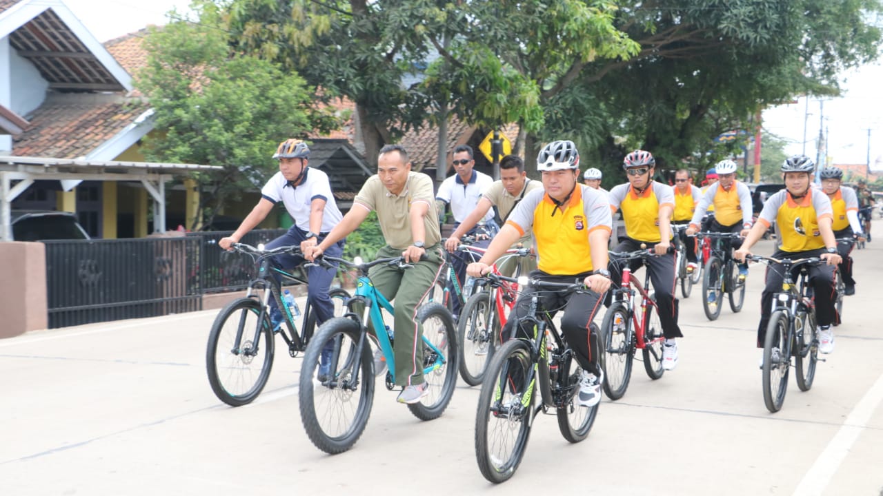 Kapolda beserta rombongan mendayungkan sepeda sepanjang perjalanan kurang lebih sepanjang 15 kg dari Makorem 064 MY menuju kampung Ambon, Kecamatan Kasemen, Serang.