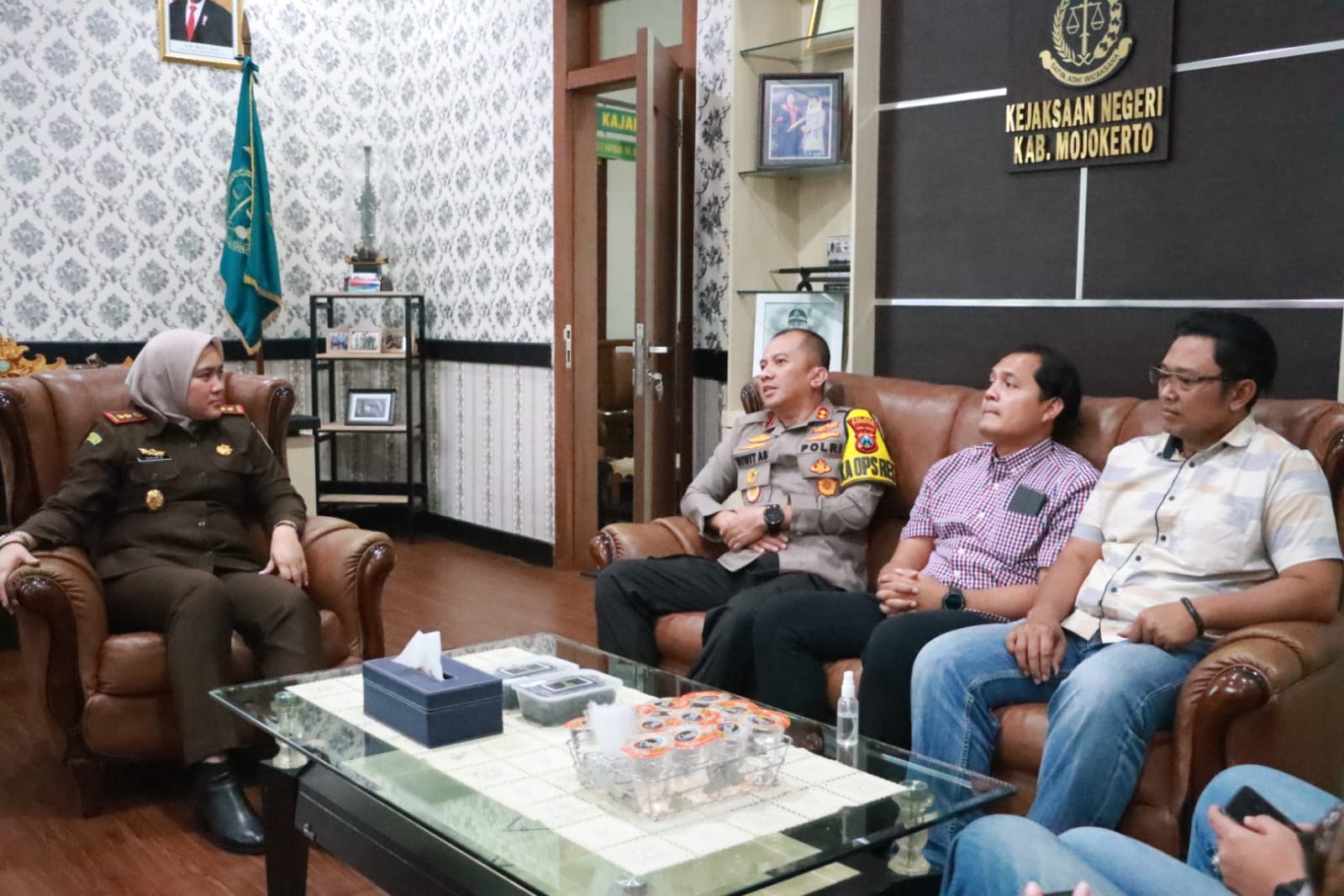 Kedatangan Kapolresta Mojokerto beserta rombongan disambut dengan baik oleh Kepala Kejaksaan Negeri Kabupaten Mojokerto Sulfiariana Hapsari di ruang kerjanya.