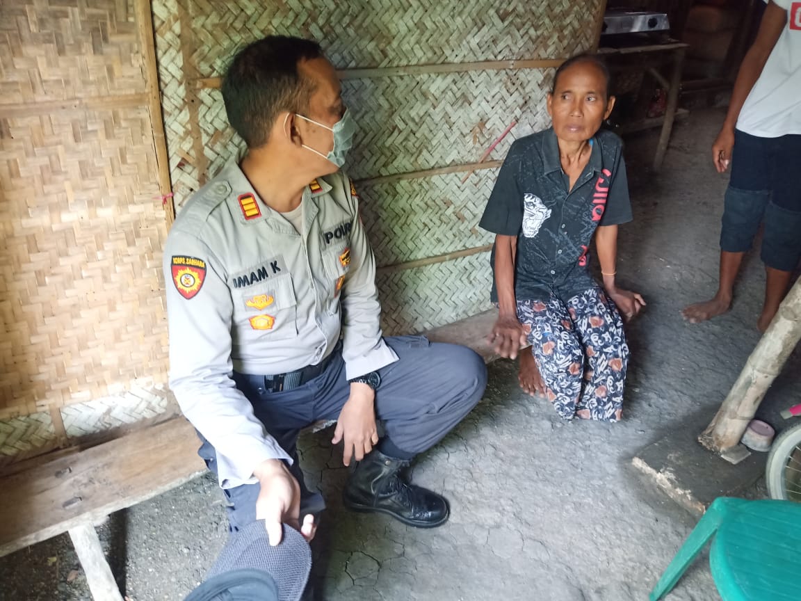 MASPOLIN || Bojonegoro – Kapolsek Sumberrejo AKP Imam Kanafi bersama Bhabinkamtibmas Desa Sambongrejo Brigadir Puji Setiyono memberikan bantuan sosial kepada Ibu Surati (68) warga Desa Sambongrejo Kecamatan Sumberrejo pada hari Minggu (03/05/2020) pagi tadi.